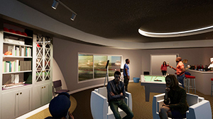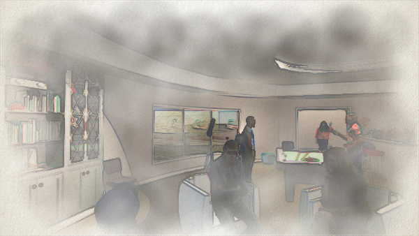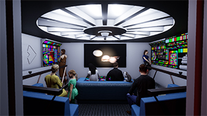 Concept, Star Ship Home Theater. Modeled in Rhino, graphics from AutoCAD and Photoshop, rendered in Twinmotion. 2023. |