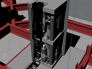 ![]() Early rendering (front) concept model of a theme park attraction. In development, Modeled in Rhino, no imported assets. |