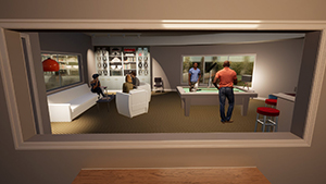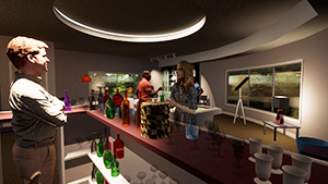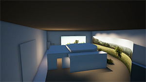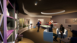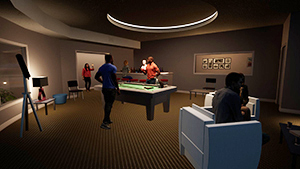 Concept model, set, recreation room. Model in Rhino, rendering in Twinmotion. |