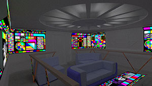 Concept, Star Ship Home Theater. Modeled in Rhino, graphics from AutoCAD and Photoshop, rendered in Rhino. 2023. |