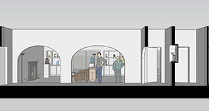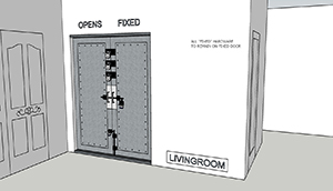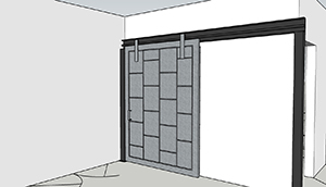 Franklin's House, SketchUp 2019. Snowfall. Study for secure door to cash room. |