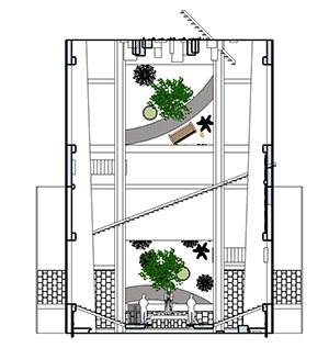 Fukayama's space had a variety of names and designs. Most of the designs were based on the concept of M. C. Escher, gardens on the wall, stairs on the ceiling, etc., SketchUp, 2017 Legion. |